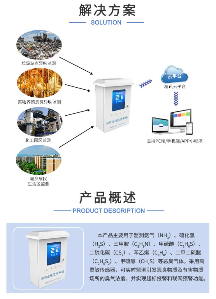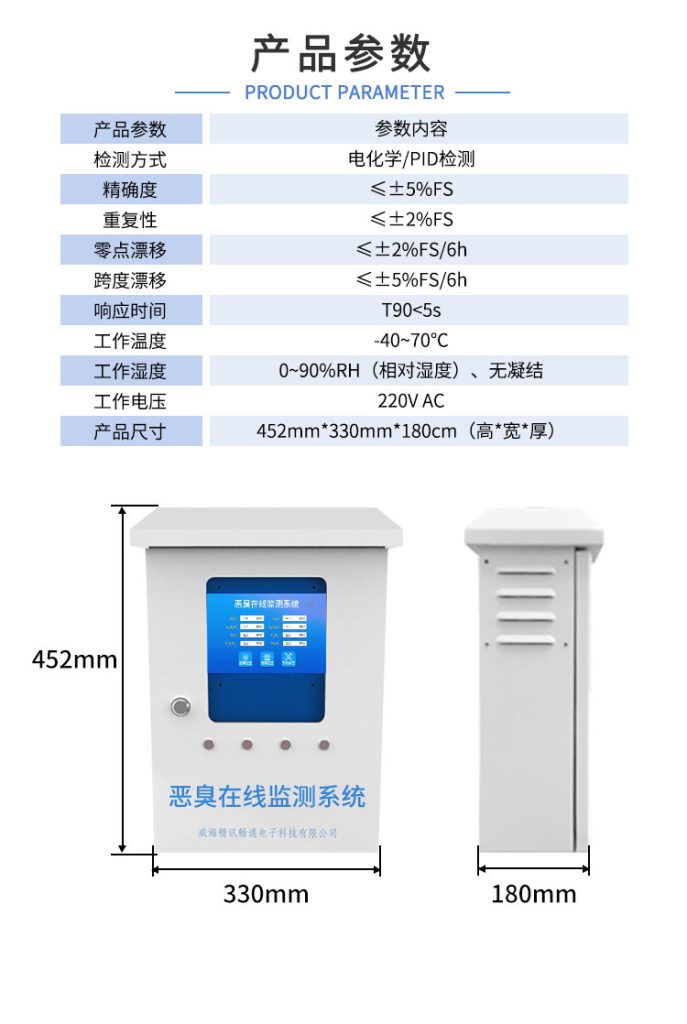 惡臭氣體監測系統主要檢測臭氣、硫化氫、氨氣。該設備所使用的氣體探頭是在清潔空氣中電導率較低的金屬氧化物半導體材料。當傳感器所處環境中存在某種氣體時,傳感器的電導率隨空氣中氣體濃度的增加而增大。使用簡單的電路即可將電導率的變化轉換為與該氣體濃度相對應的輸出信號。