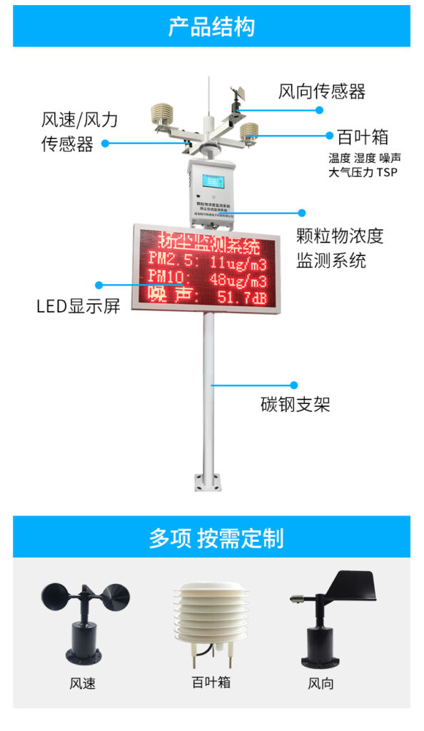 噪音監(jiān)測、濕度監(jiān)測、風向監(jiān)測、PM10監(jiān)測、TSP監(jiān)測、風速監(jiān)測、濕度監(jiān)測、PM2.5監(jiān)測、風力監(jiān)測、氣壓監(jiān)測