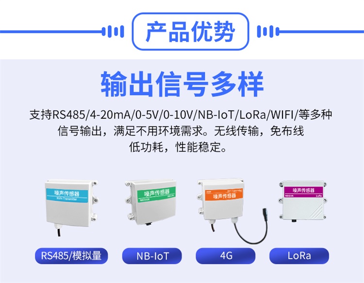 精訊暢通自主研發(fā)的RS485噪聲傳感器可以廣泛應(yīng)用于倉庫機房、生產(chǎn)車間、檔案室、圖書館、學(xué)校、商城、智能家居、樓宇控制等領(lǐng)域。具有多種傳輸信號,可以更好的滿足不同客戶的具體需求。具低功耗、穩(wěn)定性強,抗干擾能力強,采用IP65的高密度外殼,無懼惡劣環(huán)境。
