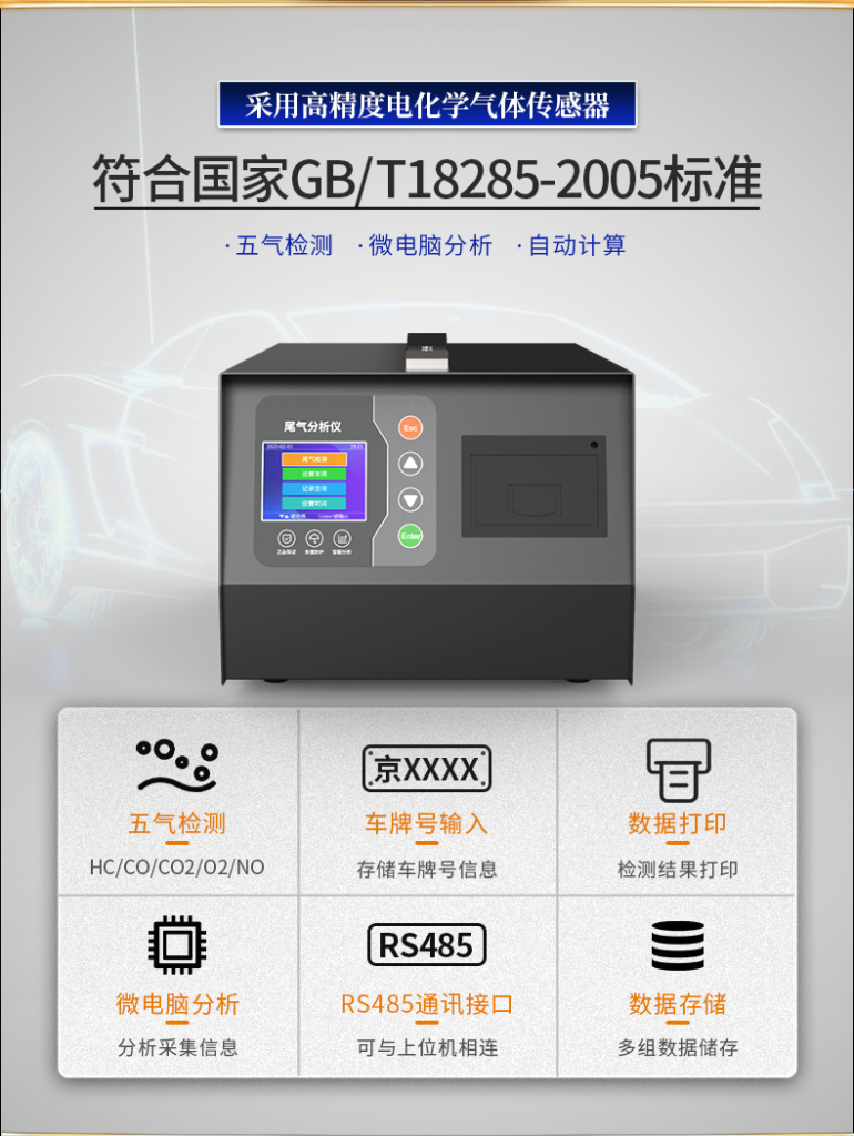 傳感器內部帶有高精度放大、去噪聲處理、溫度補償處理,出廠前經標準氣體標定處理,保證尾氣分析儀測得準確的氣體濃度信息。配有嵌入型熱敏打印機,打印尾氣分析數據。將設計融于人性,將便捷帶入生活。