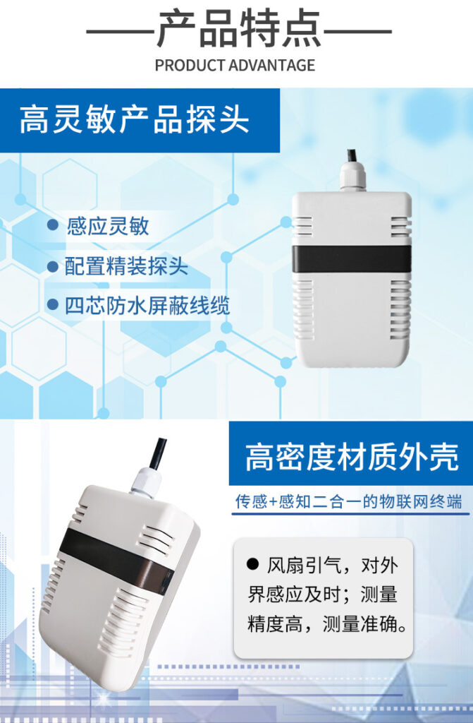 2、精品探頭:顆粒物傳感器內置高靈敏度探頭,精度高,線性度好便于安裝,傳輸距離遠。