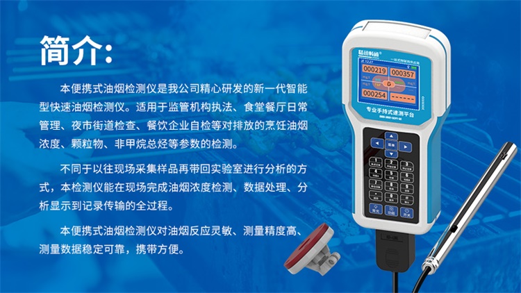 便攜式油煙檢測儀適用于監管機構執法、食堂餐廳日常管理、夜市…