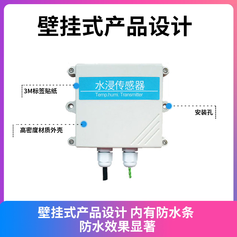 3、無懼惡劣環境,IP65高密度材質外殼,水浸傳感器內置防水條,防潮防塵。高溫高濕環境,粉塵,雨雪等惡劣環境均可使用,-20攝氏度到60攝氏度(可定制)。
