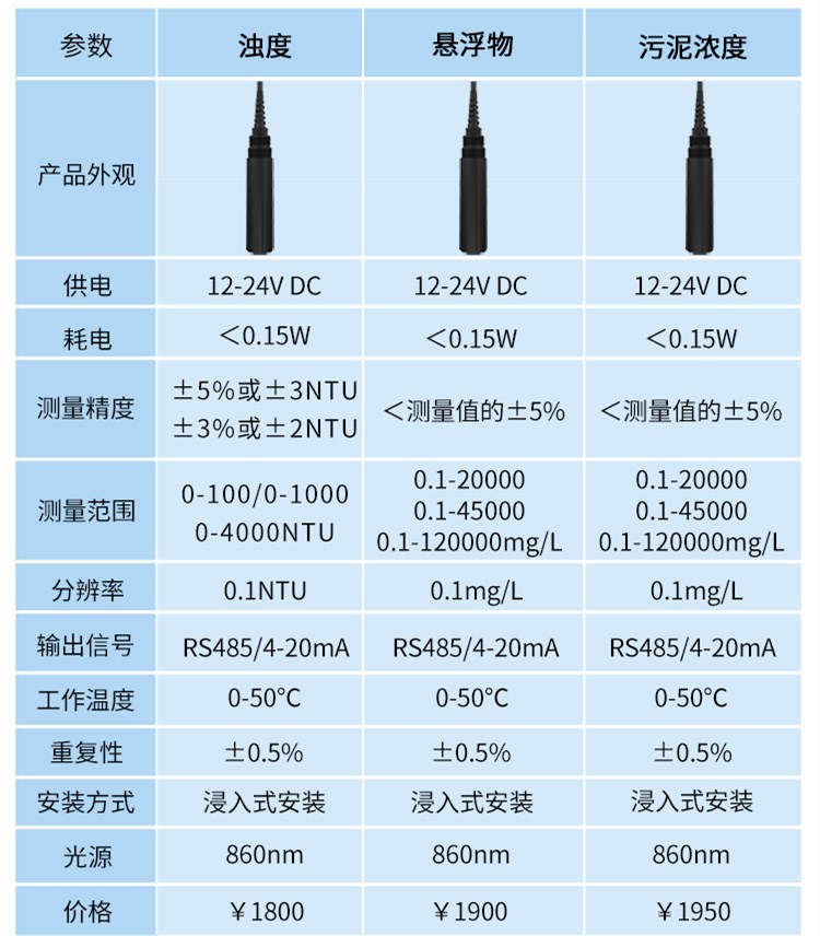 | 測量范圍 | 0-100/0-1000 0-4000NTU | 0.1-20000 0.1-45000 0.1-120000mg/L | 0.1-20000 0.1-45000 0.1-120000mg/L |